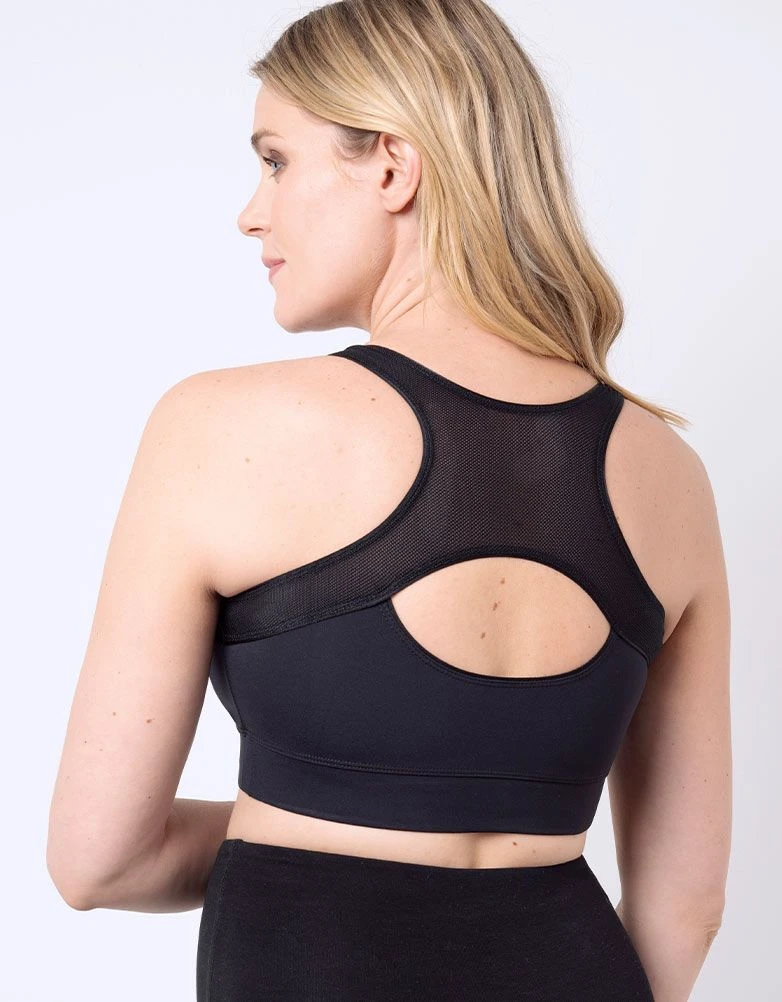 Gardez la forme tout au long de la grossesse avec notre brassière de sport grossesse et allaitement Seraphine noire. Réalisée dans un tissu anti-transpirant performant avec des détails maillés, elle laissera respirer la peau, offrant maintien agréable, parfait pour le yoga prénatal et les exercices de sport. Une ouverture simple à l’avant permet un accès facile pour allaiter bébé en tout simplicité et à tout moment de la journée. Que vous courriez, fassiez de la gym ou travailliez votre zen attitude dans un cours de gym prénatal, nos brassières de sport grossesse et allaitement offrent un soutien et un confort idéal.