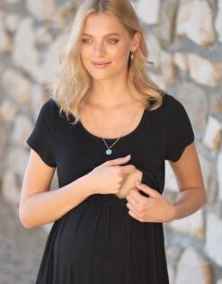 Seraphine Robe Longue Grossesse à Allaitement En Jersey Noire