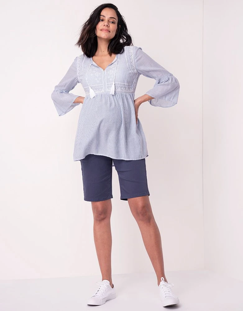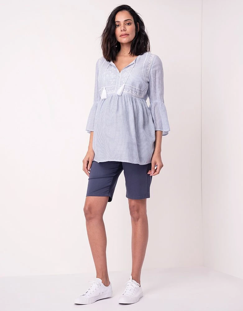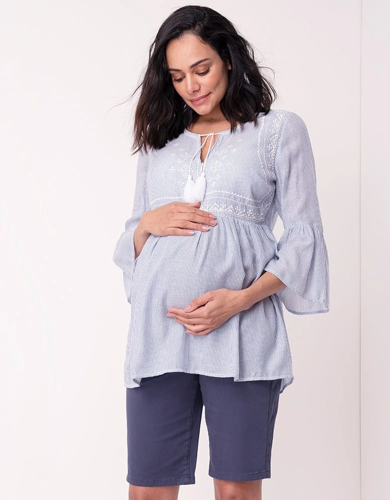 Adoptez le look bohème chic cette saison avec notre blouse grossesse brodée à rayures. Ses détails brodés, ses manches cloches et sa coupe évasée mettront en valeur vos nouvelles formes avant, pendant et après votre grossesse. Assortissez-le avec un jean grossesse pour un look décontracté.