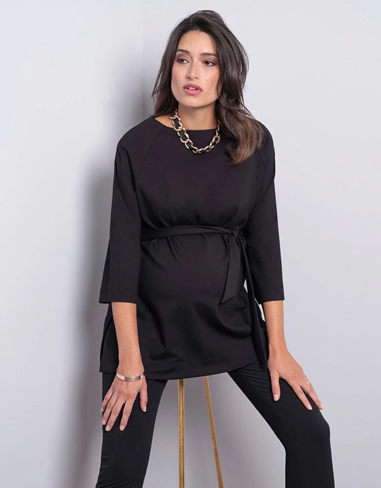 Avec une coupe chic et simple, lĂ©gĂšrement Ă©vasĂ©e, notre blouse de grossesse chic noire est idĂ©ale pour sublimer la silhouette. ConfectionnĂ©e en jersey Ponte premium et avec sa coupe chic, ce haut de maternitĂ© drape Ă©lĂ©gamment vos courbes de future maman, tandis qu’une ceinture amovible marque la silhouette. Fendu sur les cĂŽtĂ©s et avec sas manches raglantes tendance, portez facilement ce haut avec une tailleur pantalon pour un look habillĂ© ou un jean boyfriend.