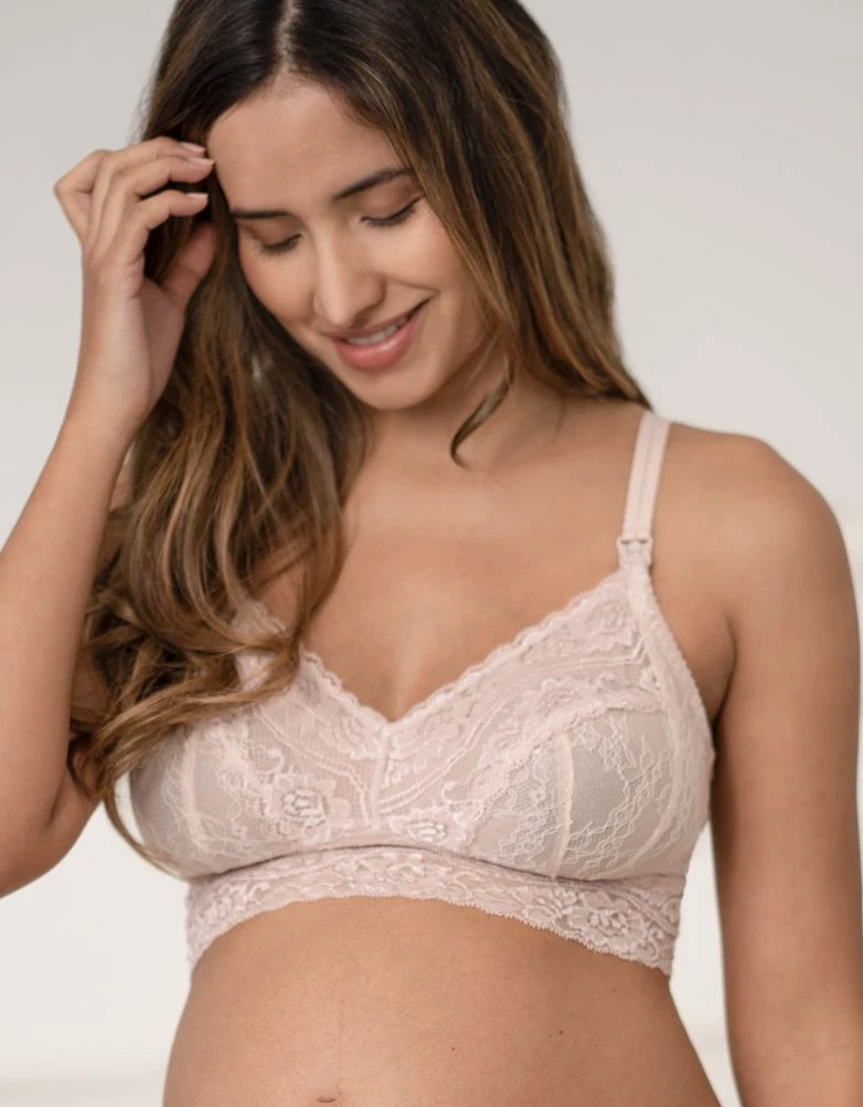 Inutile d’abandonner votre lingerie en dentelle parce que vous êtes enceinte. Cette brassière de grossesse et d’allaitement est à la fois confortable, ultra-féminine et optimisée pour les mamans. La dentelle stretch, le support élastique et les bretelles ajustables offrent un ajustement flexible, idéal pour les fluctuations de taille tout au long de la grossesse et après l’allaitement. Une fois que bébé est arrivé, les agrafes offrent une ouverture pour allaiter tout en étant élégante.