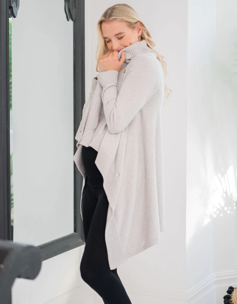 Parfait pour la demi saison ou pour réchauffer vos tenues, ce gilet long se porte pendant la grossesse mais également après pour allaiter en toute discrétion. Sa coupe asymétrique ultra tendance, allongera la silhouette et sa matière fluide n’alourdira pas vos tenues. Les boutons nacrés sur les épaules vous permettront de le porter fermé, et d’offrir une option discrète pour allaiter bébé.