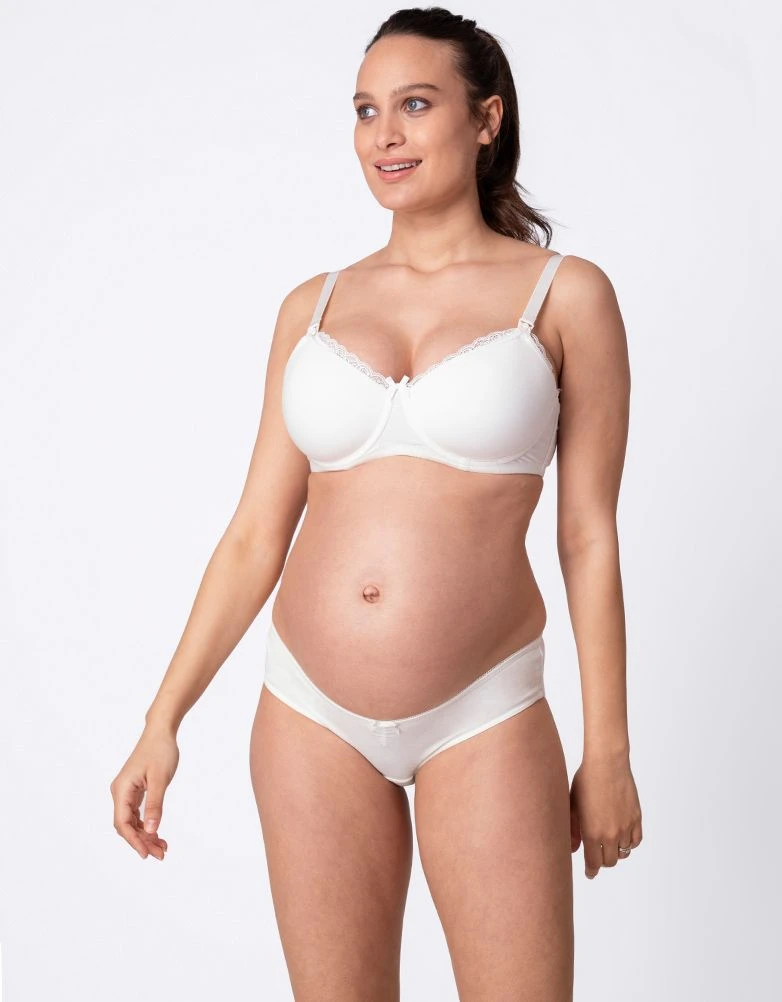 Coupe classique, comfy et facile à porter, notre culotte de grossesse en coton blanche est la culotte parfaite pour vous accompagner dans votre quotidien ! En coton stretch doux et conçue pour s’adapter confortablement à votre ventre, associez-la à notre soutien-gorge de grossesse et d’allaitement en coton blanc pour un ensemble élégant.