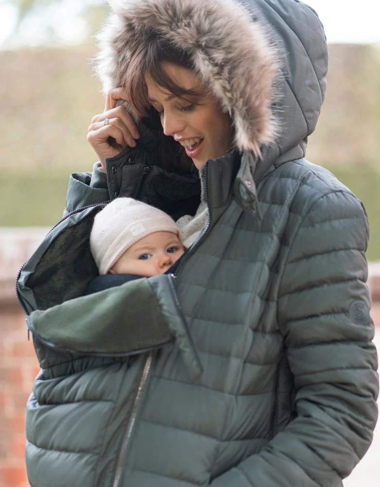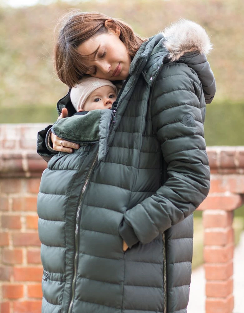 Mettez-vous à l’aise dans l’un de nos modèles les plus chauds ! La doudoune longue duvet 3 en 1 de grossesse et de portage kaki est conçue pour lutter contre les conditions hivernales les plus extrêmes, pour accompagner votre grossesse et bien au-delà. Rembourrée de duvet naturel certifié RDS, intégralement doublée de velours doux, elle vous gardera bien au chaud, vous et votre bébé.