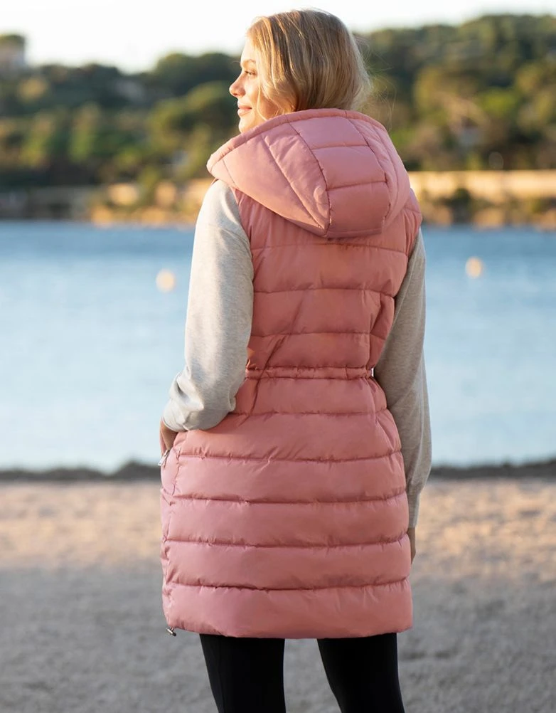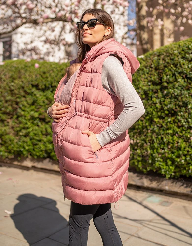 Seraphine Doudoune Longue Sans Manches 3 En 1 De Grossesse à Portage Avec Capuche Rose