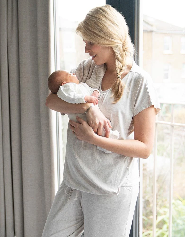 Confort garanti avec notre ensemble loungewear de grossesse et allaitement ultra doux gris clair. Réalisé en jersey stretch ultra doux, il vous permettra de passer des nuits de rêve ! Il permet de rester féminine grâce au cordon à nouer sous le ventre qui redessine votre silhouette. Une fois bébé né, ce ensemble a vous permettra d’allaiter facilement. Son pantalon flexible se porte soit taille basse ou haute selon vos envies. Cet ensemble est un classique incontournable que doivent posséder toutes les futures mamans pendant la grossesse et après.
