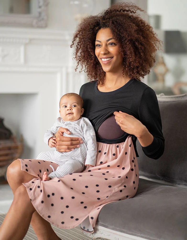 Seraphine Ensemble Pull Superposé Et Robe De Grossesse à Pois Roses