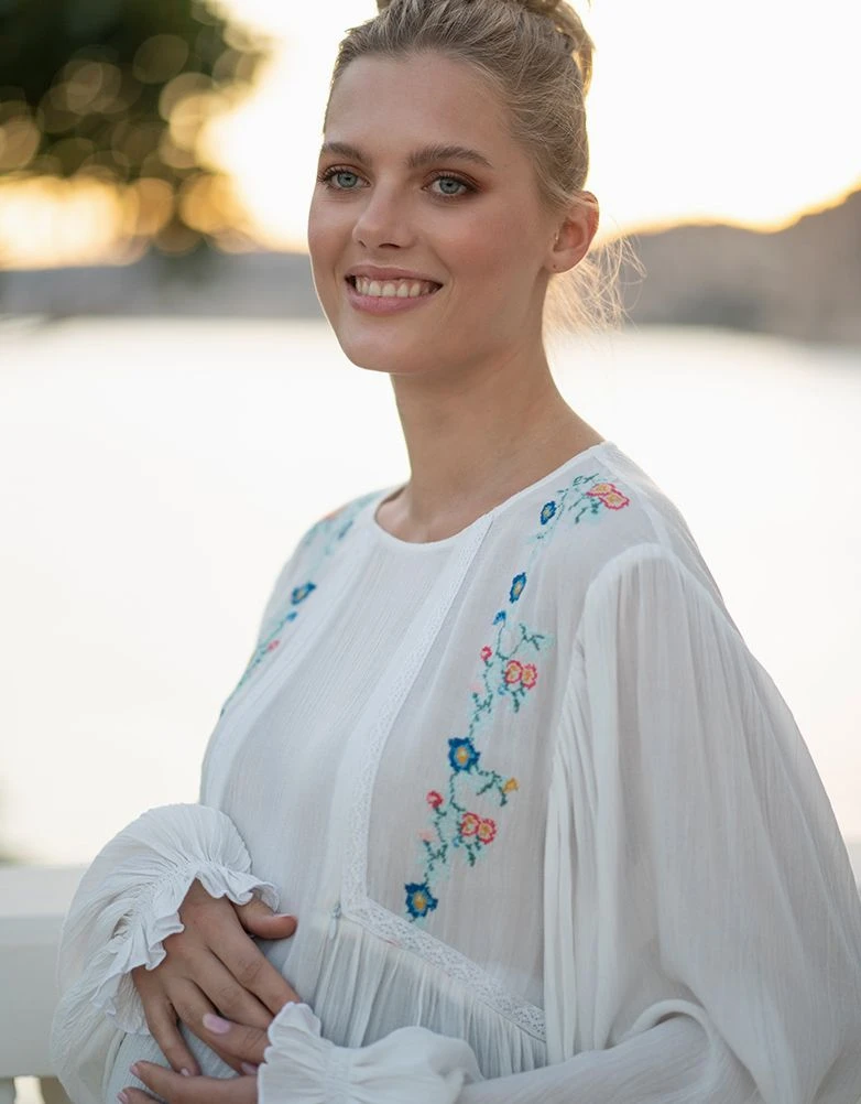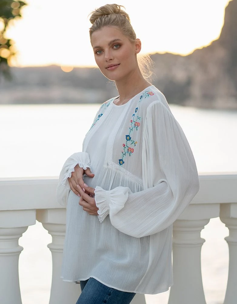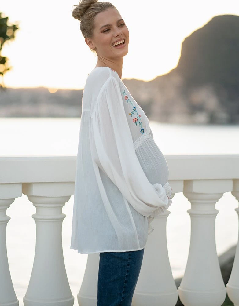 Seraphine Haut Chemisier Blanc De Maternité à Allaitement à Fleurs Brodées