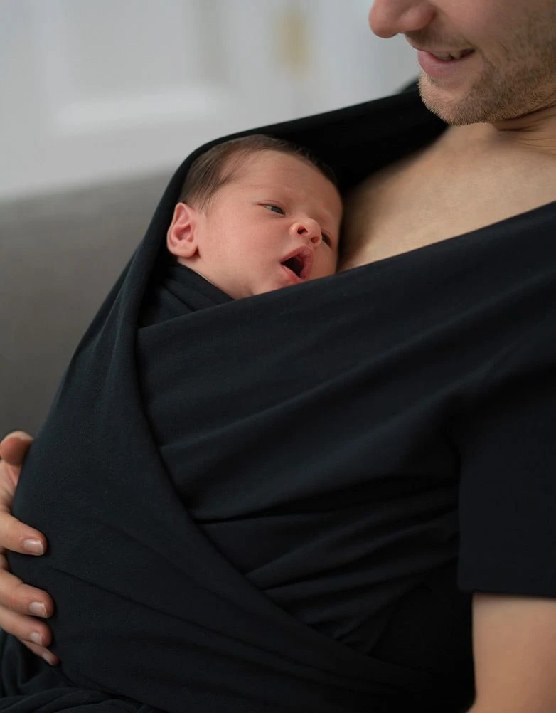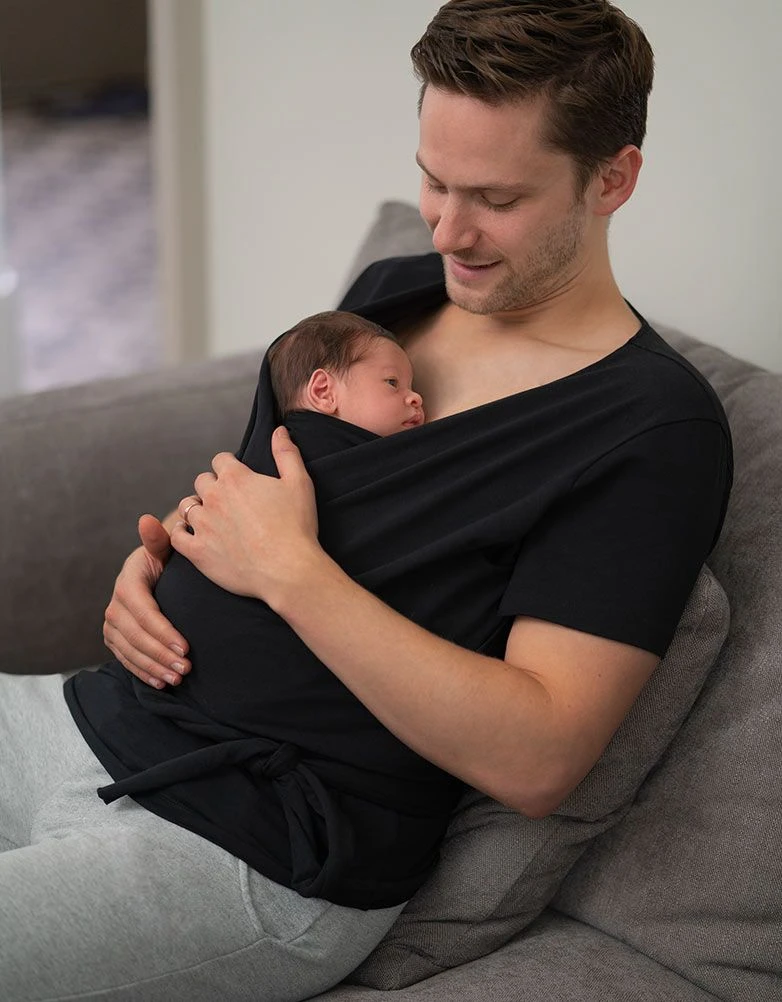 Pour un nouveau père, le contact peau à peau avec son nouveau-né non seulement apaise le bébé, mais il peut aussi aider à augmenter le sentiment de compétence parentale. Notre haut contact peau à peau pour hommes est conçu pour qu’il profite de ce moment précieux avec bébé les mains libres. Fabriqué en coton stretch, il est tout doux pour la peau sensible de bébé et peut-être utilisé dès sa naissance. Il suffit d’installer bébé contre la poitrine de papa et d’attacher les liens à nouer pour maintenir bébé dans une position optimale.