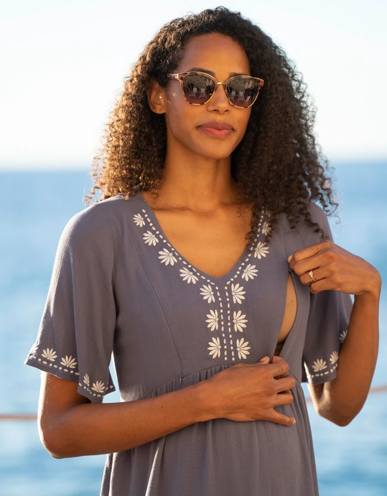 Seraphine Haut De Grossesse à Allaitement Brodé Bleu à Col En V