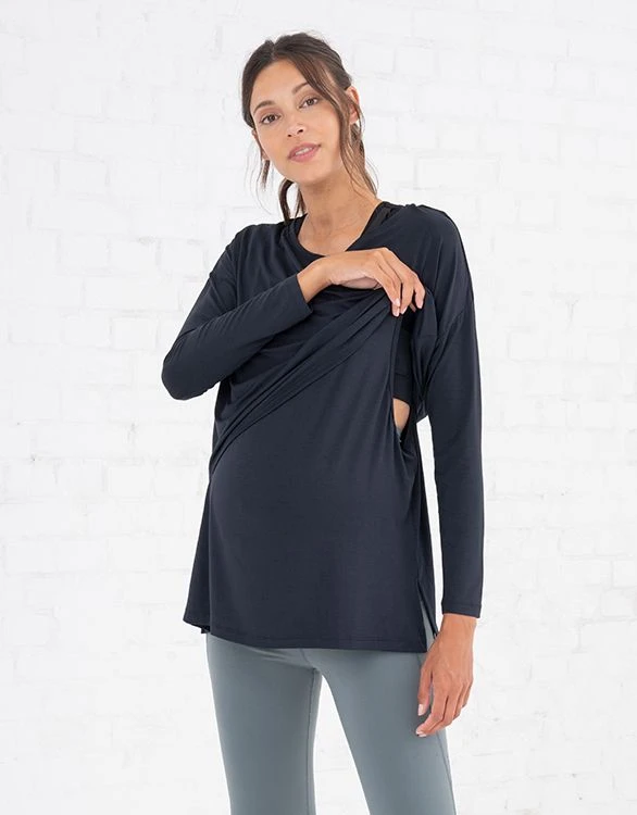 Super doux et BIO, notre haut de grossesse et d’allaitement, noir, est votre ESSENTIEL du quotidien. Conçu dans un modal écologique tentié en dope respirant, il éloigne la transpiration de la peau et l’évacue par le tissu pour accélérer l’évaporation. Sa coupe ample permet de recouvrir vos formes pour vous accompagner tout au long de la grossesse. À la naissance de bébé, il suffit de relever le haut àw l’avant pour allaiter discrétement. Portez-le avec un legging et des baskets ou avec un jean – ce modèle peut être porté des deux façons !