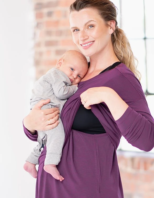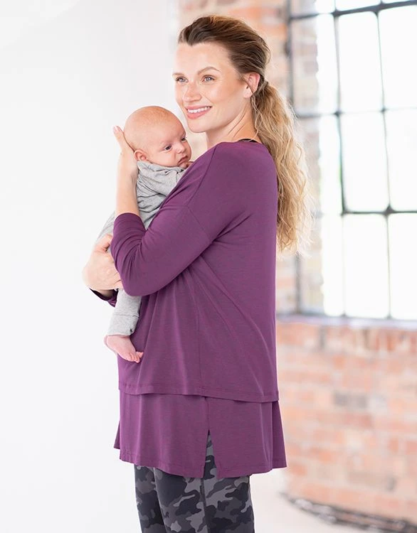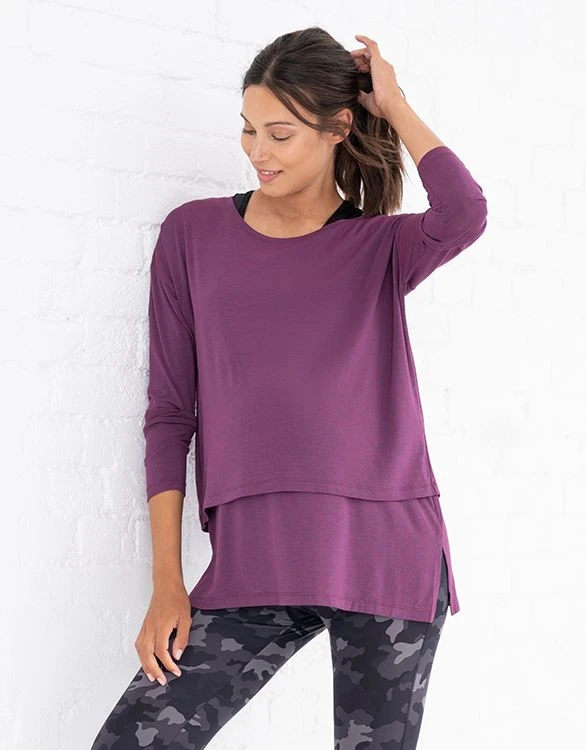 Super doux et BIO, notre haut de grossesse et d’allaitement, violine, est votre ESSENTIEL du quotidien. Conçu dans un modal écologique tentié en dope respirant, il éloigne la transpiration de la peau et l’évacue par le tissu pour accélérer l’évaporation. Sa jolie coupe decontractée permet de recouvrir vos formes pour vous accompagner tout au long de la période de grossesse. À la naissance de votre bébé, vous pouvez allaiter discrétement en relevant le haut à l’avant. Ce haut est tout simplement parfait pour faire du sport à la gym ou dans un parc !