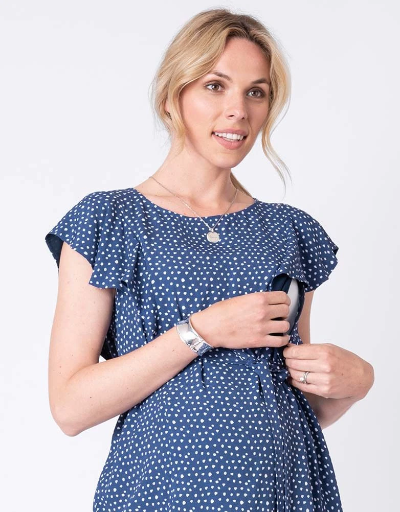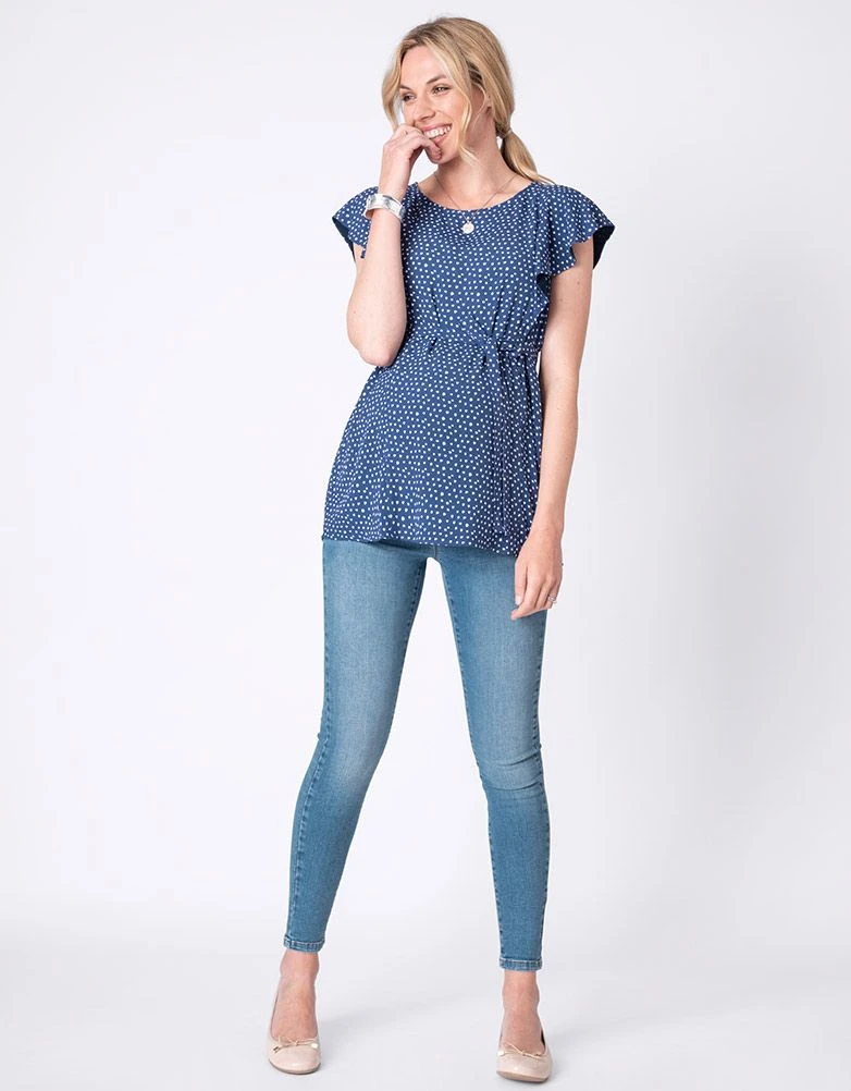 Ce haut grossesse et allaitement à pois avec ses manches volantées, bleu, est parfait pour être chic et féminine avant, pendant et après la grossesse. Avec sa coupe élégante et sa matière ultra douce, ce joli haut sublime parfaitement vos nouvelles courbes tout au long de la grossesse. Sa ceinture à nouer marque votre taille Empire et souligne votre silhouette de future maman. Après que bébé soit né, les fermetures discrètes à l’avant permettent d’allaiter facilement. Les manches volantées et l’imprimé à pois complètent le look. Portez-le avec un jean slim et des ballerines pour un look coloré et super tendance.