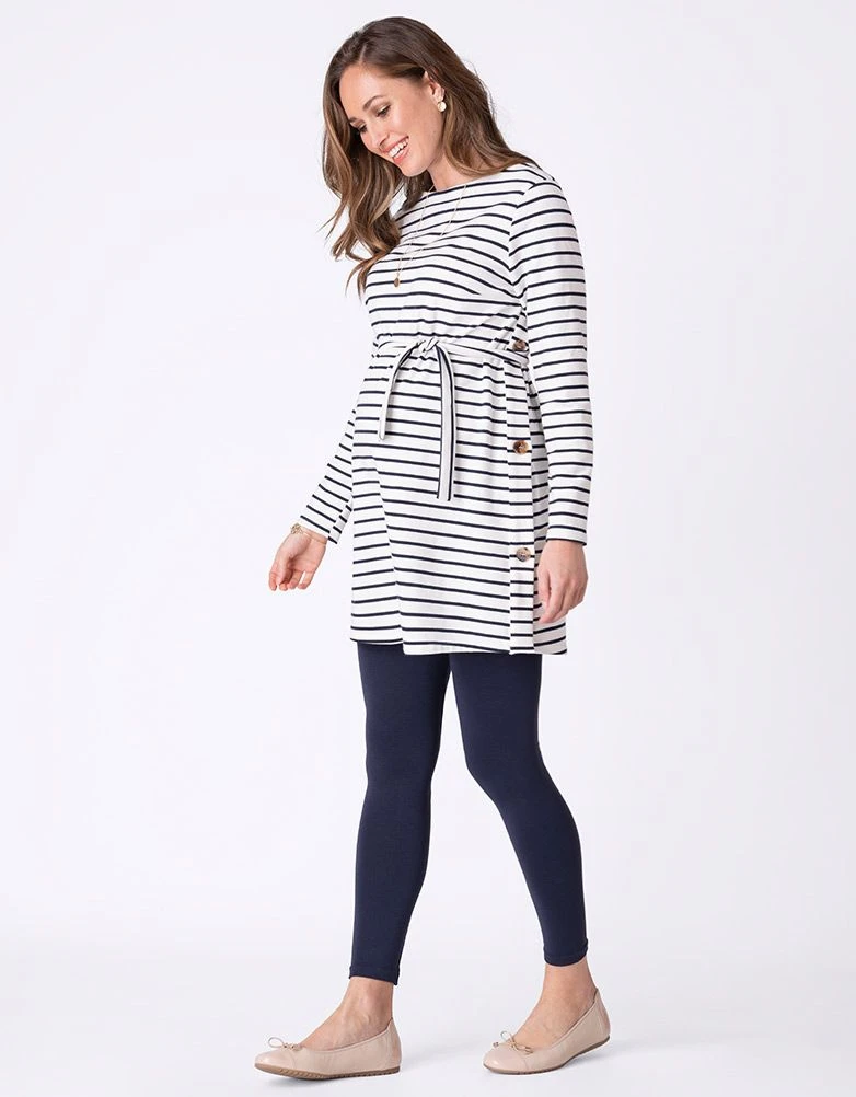 Vous allez craquer pour notre legging de grossesse en bambou tout doux et ultra confortable de couleur bleue marine. Il sera parfait pour vos après-midi yoga, pour être en mode cocooning à la maison ou tout simplement pour porter avec une tunique. C’est le legging idéal pour un look de tous les jours qui recouvre vos courbes de future maman.