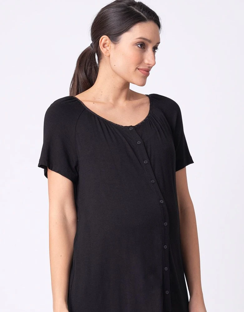 Ultra-confortable et féminine, notre lot composé de deux chemises de nuit grossesse noir est un indispensable pendant et après la grossesse. Parfaites pour la valise d’hôpital, ces deux chemises de nuit seront aussi pratiques qu’agréables à porter. La coupe ample et féminine de ces deux chemises de nuit, vous offrira un ajustement parfait à chaque étape de votre grossesse. Une fois bébé né, les boutons sur le devant vous permettront d’allaiter facilement et en toute discrétion. Elles vous permettront de pratiquer également le contact peau à peau avec votre bébé.