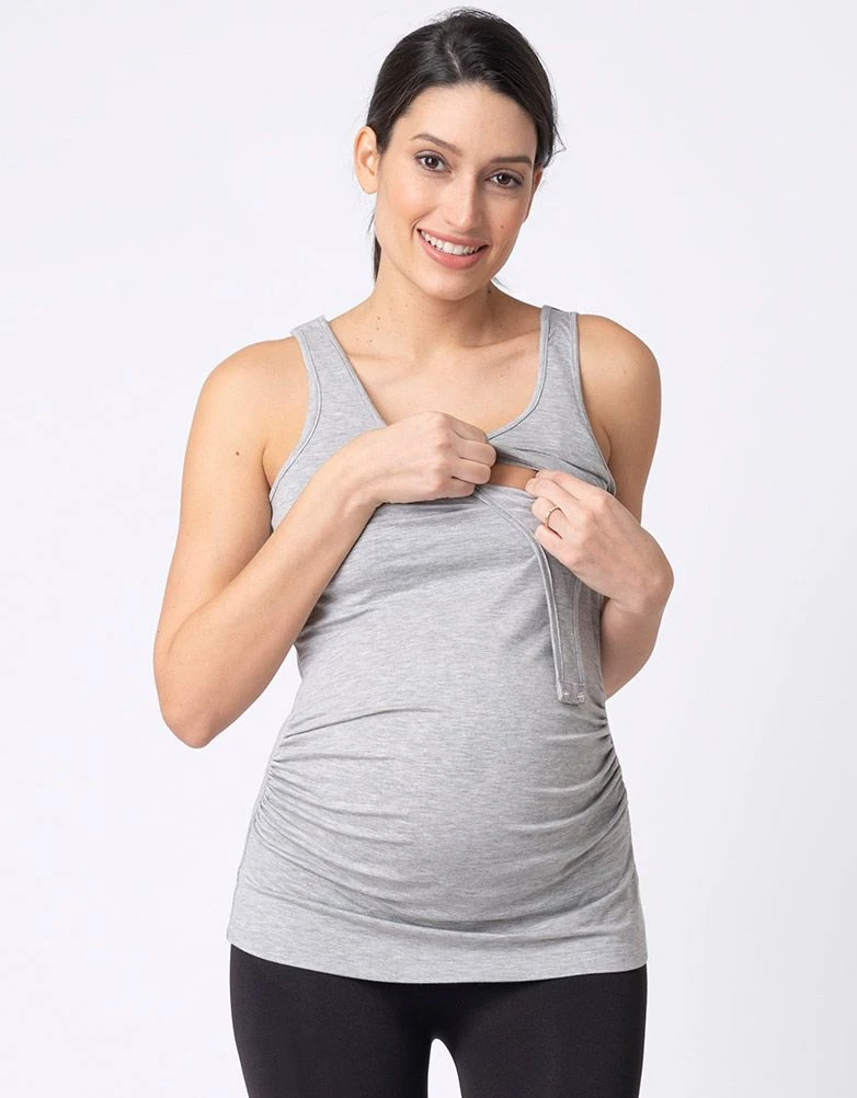 On n’a jamais assez de hauts de grossesse et d’allaitement, surtout quand ils sont aussi doux et confortables. Légèrement froncés sur les côtés, ces hauts en bleu marine et gris offrent une coupe classique qui s’adapte à votre ventre grossissant. Après la naissance de bébé, ils s’adaptent parfaitement pour faciliter l’accès à l’allaitement grâce à de simples bouton de pression aux épaules.