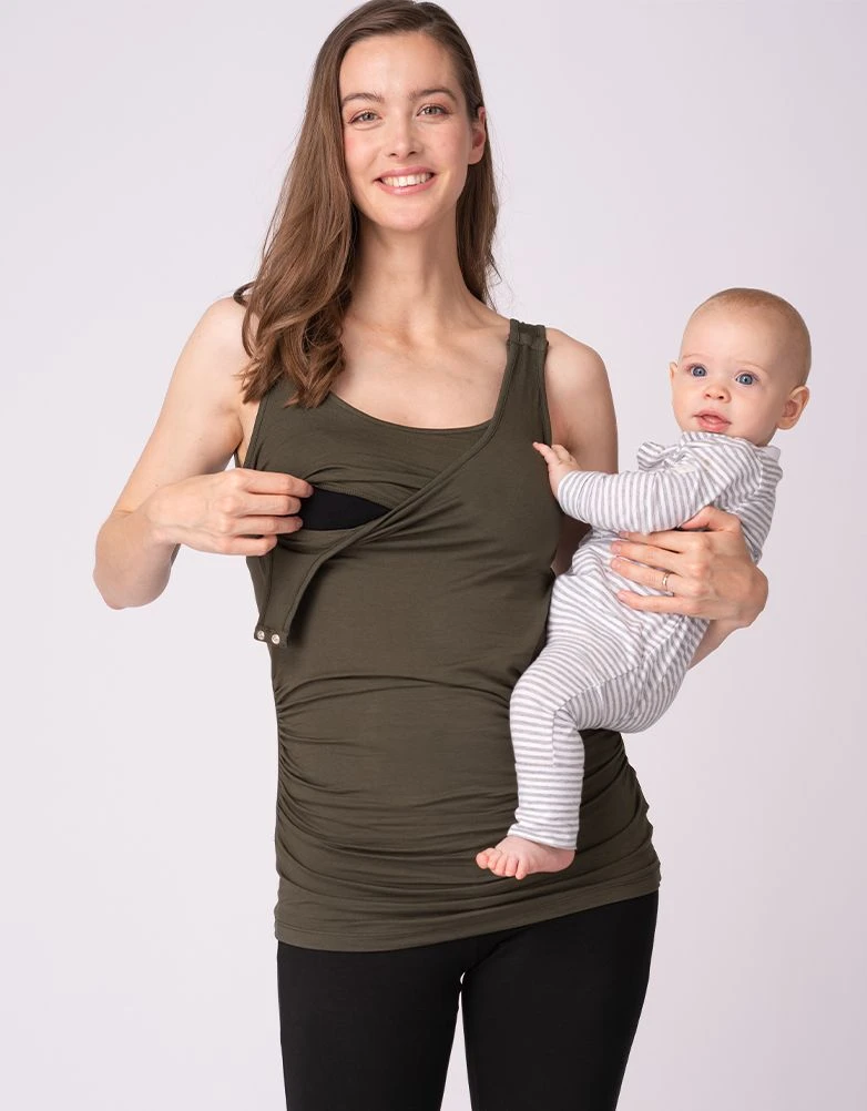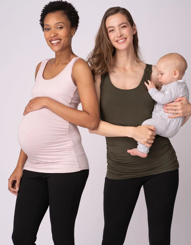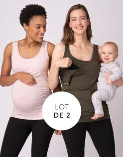 Nouvelle ou future maman, une chose est certaine. On a jamais assez d’hauts de grossesse et d’allaitement ! Surtout quand ils sont si doux et si comfy ! Légèrement froncés sur les côtés, ces hauts en rose et en kaki offrent une coupe classique qui s’adapte à votre ventre grossissant. Après la naissance de bébé, ils s’adaptent parfaitement pour faciliter l’accès à l’allaitement grâce à de simples bouton de pression aux épaules.