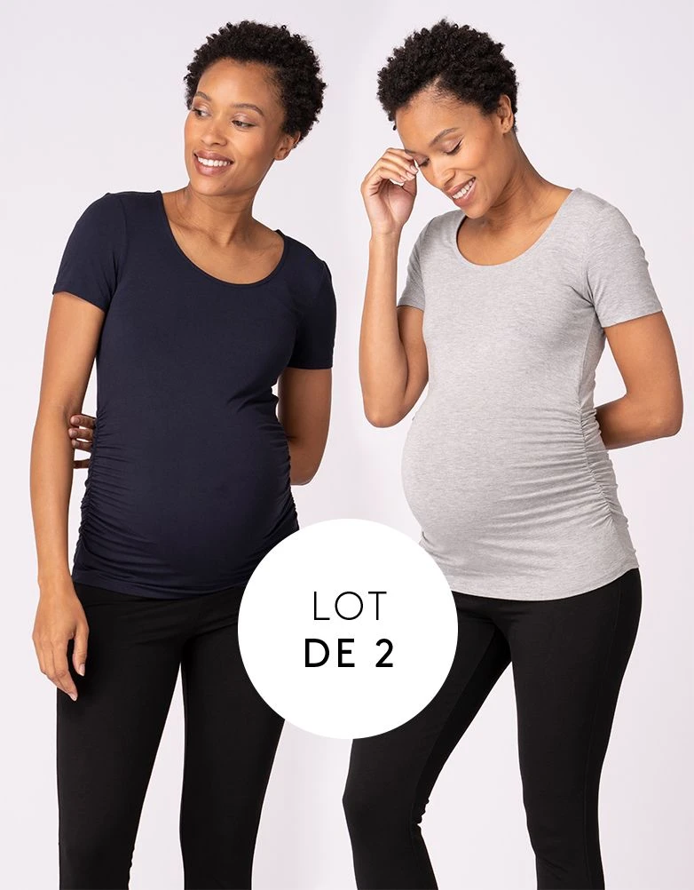 Seraphine Lot De 2 T-shirts Basiques Grossesse Et Allaitement – Gris/Bleu Marine
