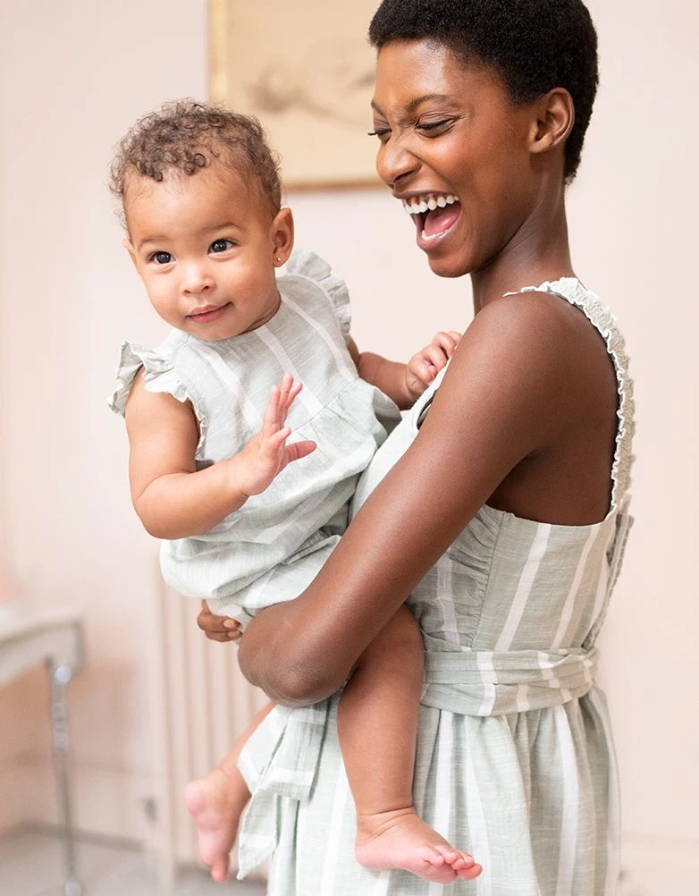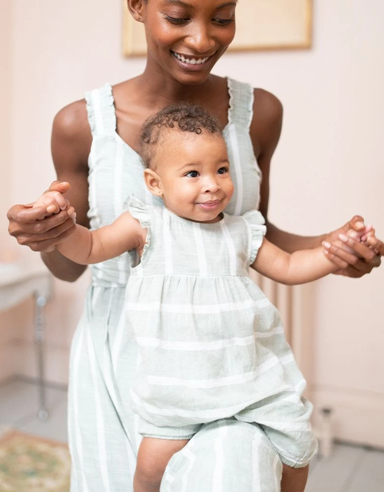 Seraphine Mama & Mini Barboteuse En Coton à Rayures Vertes Et Blanches