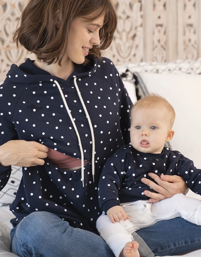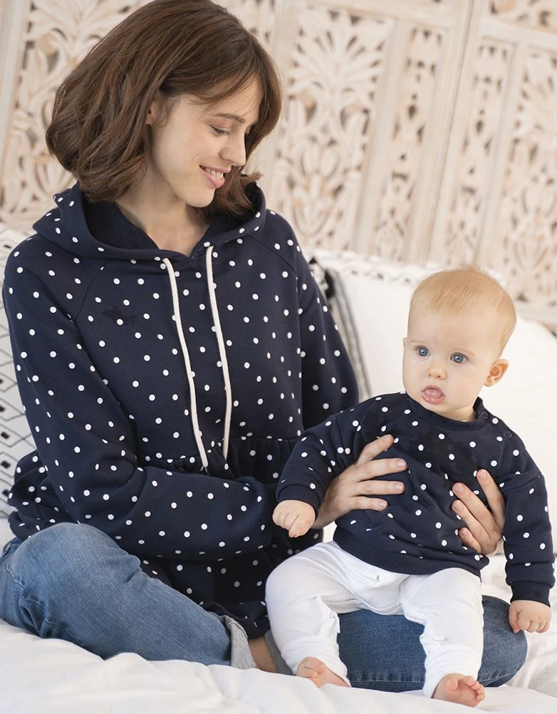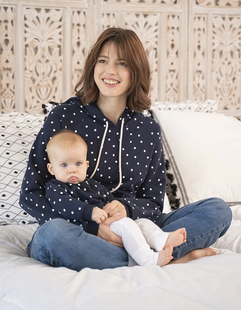 Seraphine Mama & Mini – Ensemble à Capuche Froncé à Pois Bleu Marine