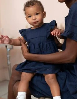 Seraphine Mama & Mini – Robe Bébé En Coton Brodée Anglaise Bleu Marine