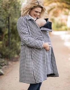 Élégant, à la mode et tellement douillet, notre manteau en laine mélangée 3 en 1 va vite devenir un incontournable de votre garde-robe de grossesse et de portage pendant les mois les plus froids. Confectionné dans une laine mélangée ultra-douce avec un motif pied-de-poule intemporel, ce manteau est non seulement élégant et agréable à porter, mais il est aussi équipé de notre solution ultra-pratique de portage de bébé ! Grâce aux fermetures éclair, il vous suffit d’ajouter la poche kangourou, doublée de velours tout doux, pour la porter sur votre porte-bébé ou votre écharpe. Nous avons spécialement conçu ce manteau avec une ceinture à basque et un dos plissé, et avons veillé à ce qu’il puisse s’adapter à votre ventre qui s’arrondit, et vous aille tout aussi bien après l’accouchement. À porter sur un jean et un pull, ou avec vos tenues de bureau pour l’hiver.