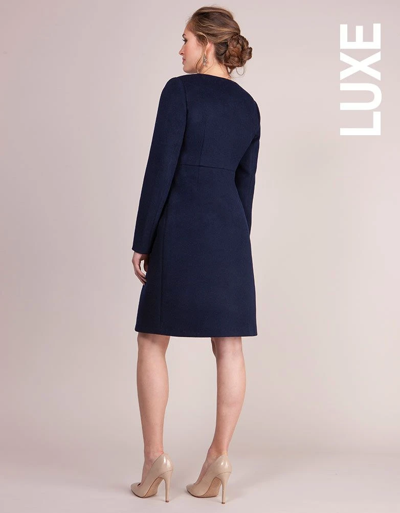 Un style déjà adopté par Kate Middleton, notre manteau grossesse en cachemire et laine bleu marine est un classique ultra tendance. Réalisé dans un somptueux cachemire et laine mélangés avec des lignes épurées et une élégante coupe droite, ce manteau offre un look intemporel idéal avant, pendant et après la grossesse. Le col rond, les boutons nacrés et les poches cousues complètent le style chic de ce manteau et le cintre légèrement créant une jolie taille empire. Portez-le au-dessus de vos robes grossesse pour un look élégant et bien au chaud.