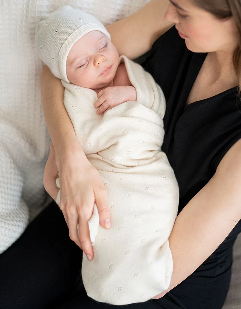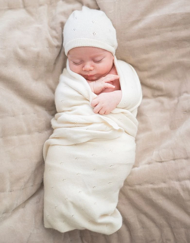 Seraphine Mini Couverture Bébé Tricotée En Coton Et Cachemire – Blanc Ivoire