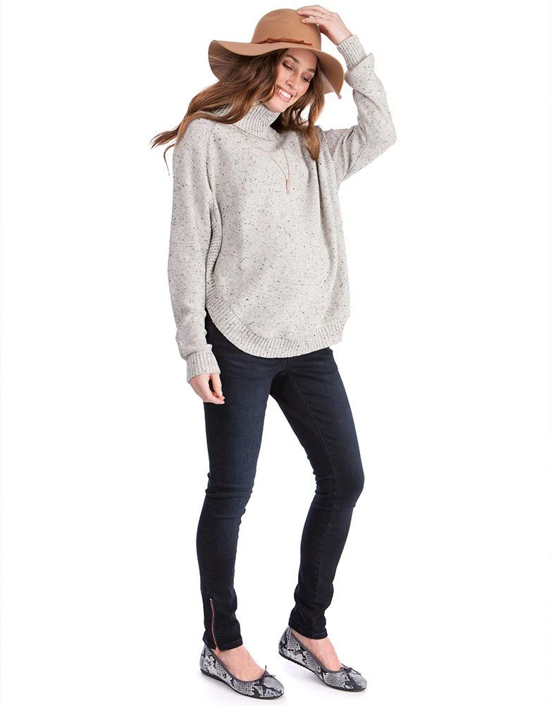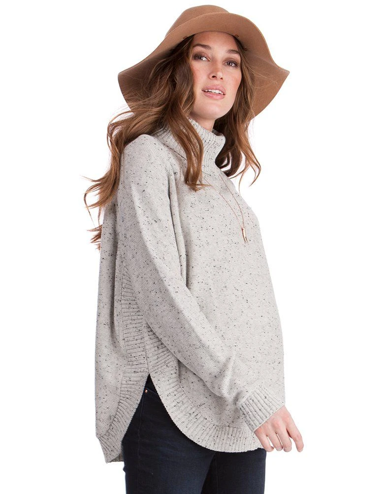 Ultra tendance et facile à porter avec son design façon cape ajouté à la praticité et le confort d’un pullover douillet, notre pull grossesse cape tacheté grise est un indispensable ! Avec sa maille de qualité et tacheté, ce pull présente une coupe très flatteuse pour votre silhouette tout au long de votre grossesse. Avec son col roulé côtelé douillet associé aux détails côtelés sur les manches et l’ourlet, ce pull grossesse est aussi confortable que tendance, parfait pour aller avec un jean et des bottines pour un style casual.