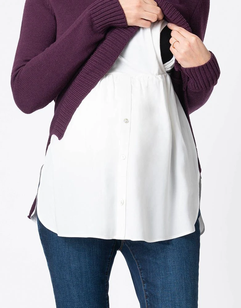 Optez pour un look chic et classique avec notre pull grossesse et allaitement 2 en 1 bordeaux. Sa maille douce et son accès discret pour allaiter en font un essentiel pour votre grossesse et au-delà. Assortissez-le avec un jean de grossesse pour un look tendance enceinte.