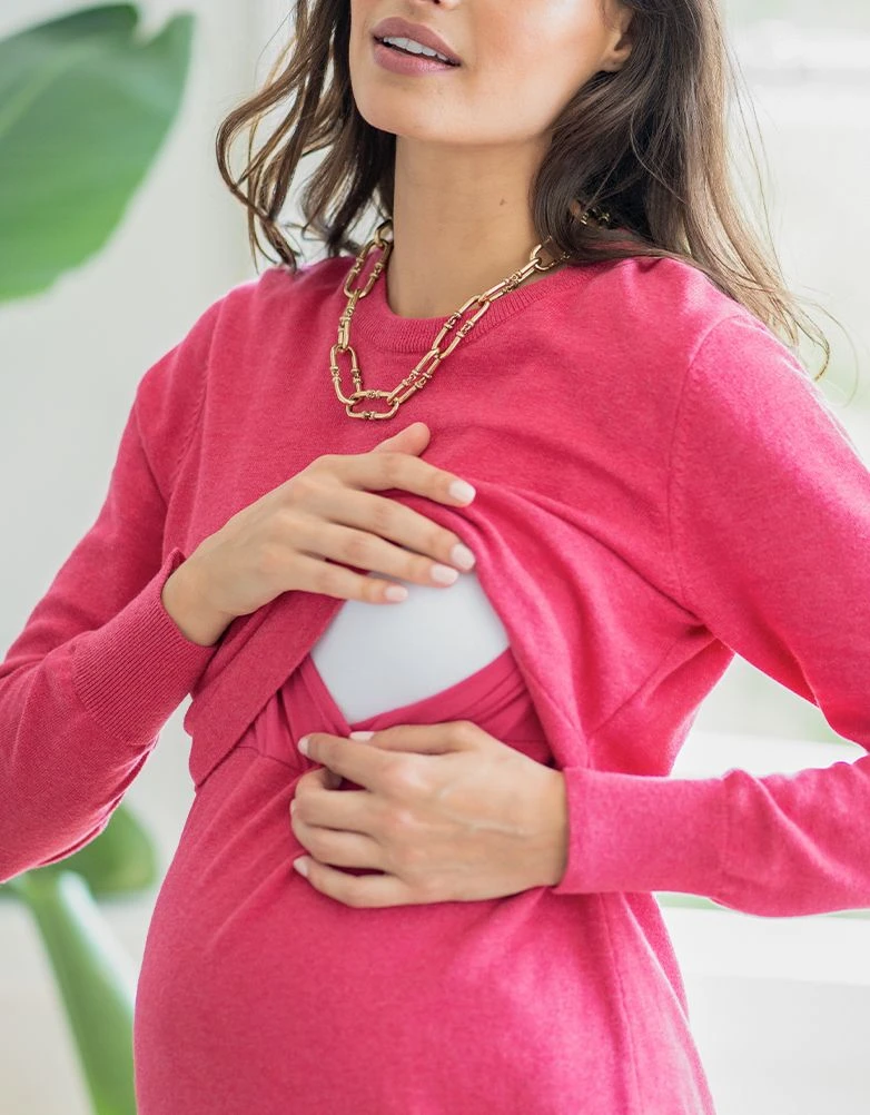 Original, féminin et pratique, dans une belle couleur cerise, notre pull en coton grossesse et allaitement à rabat apporte la touche de joie idéale à votre garde-robe de nouvelle maman. Confectionné en 100 % pur coton, ce tricot ultra-doux est parfait pour les peaux sensibles. Il est possible de le porter sous une robe ou une salopette pour créer une superposition, ou tout simplement avec un jean. Conçu pour s’ajuster parfaitement à votre ventre qui s’arrondit, ce pull restera confortable tout au long de votre grossesse. Et après l’arrivée de bébé, vous pourrez utiliser le rabat ultra-pratique, pour allaiter ou tirer votre lait où que vous soyez. Croyez-nous, vous continuerez à apprécier le confort de ce modèle longtemps, même une fois que votre bambin aura grandi.