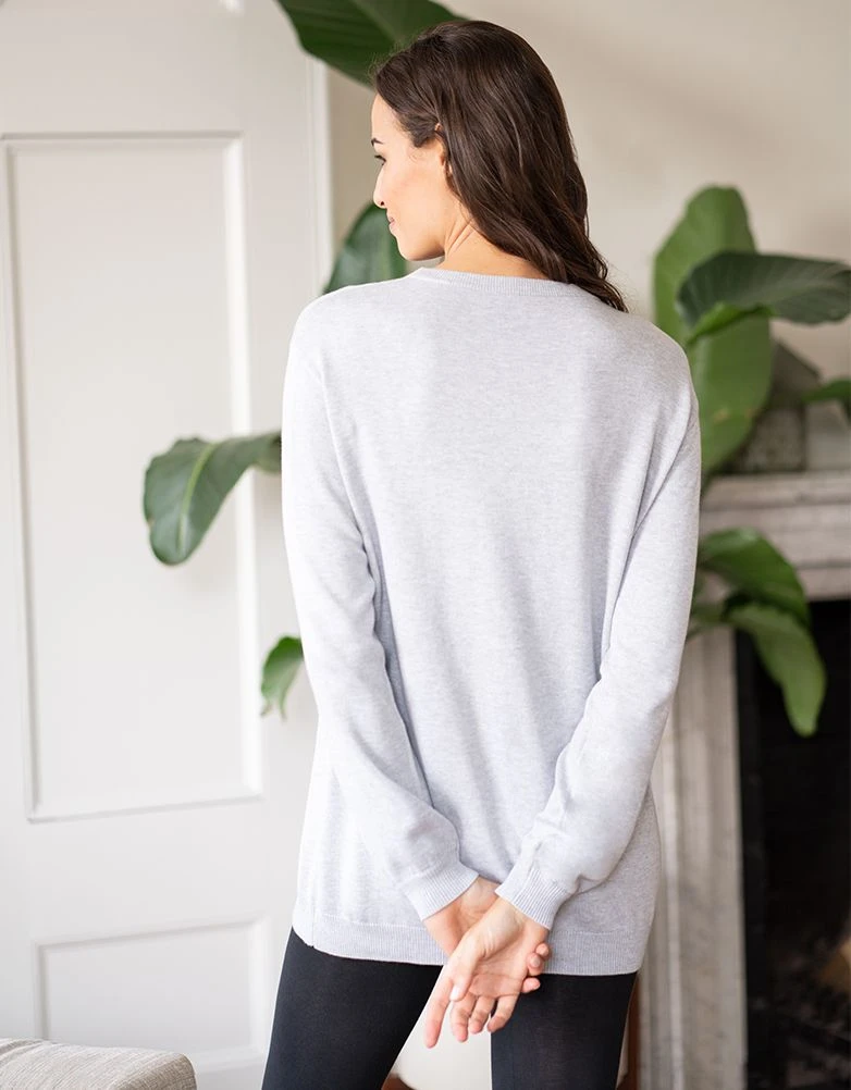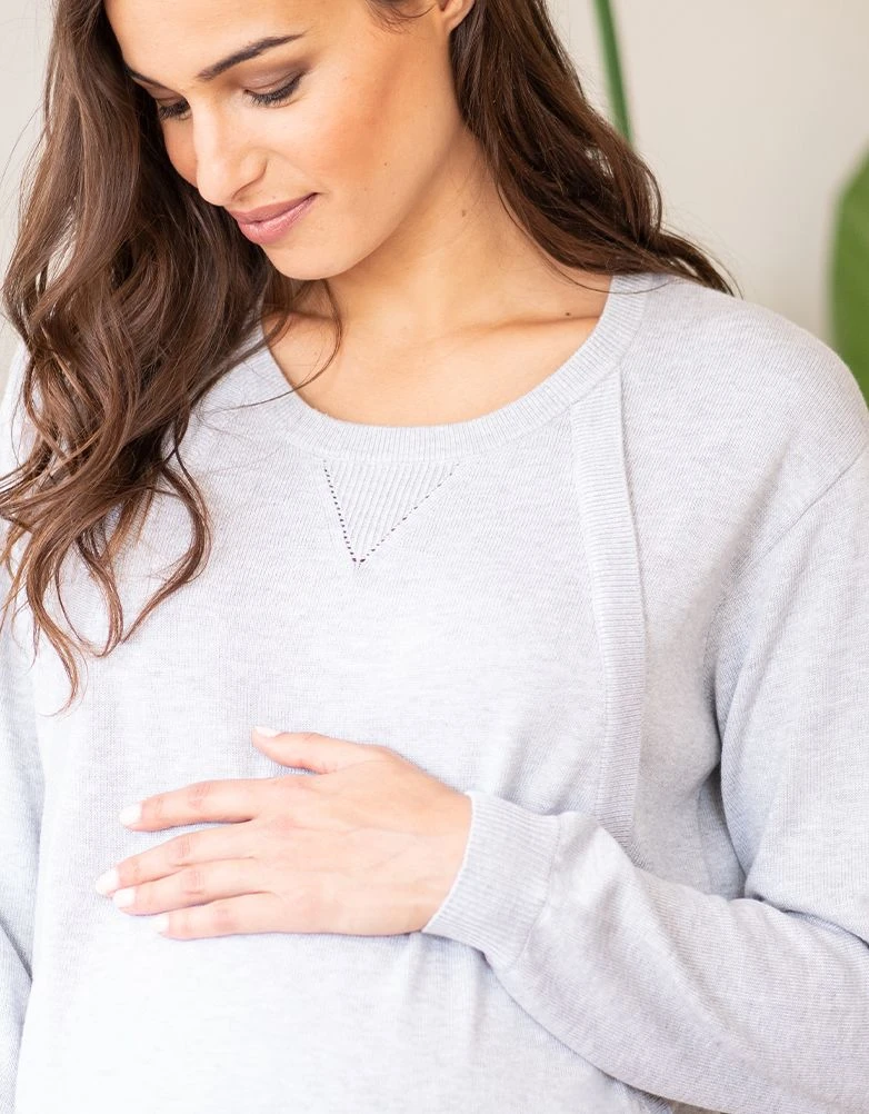 Conçu spécialement pour les mamans, ce pull en coton mélangé grossesse et allaitement à rabat gris s’adaptera à chaque étape de votre vie. Visant à vous accompagner tout au long de votre parcours de maternité, ce modèle ample offre beaucoup d’espace pour votre ventre qui s’arrondit, et reste tout aussi flatteur après l’accouchement. Nous avons ajouté un détail vraiment malin : des fermetures éclair qui vous permettront d’allaiter ou de tirer votre lait facilement, où que vous soyez. À porter avec un legging, un jean ou un pantalon de jogging, pour un style décontracté et naturel.
