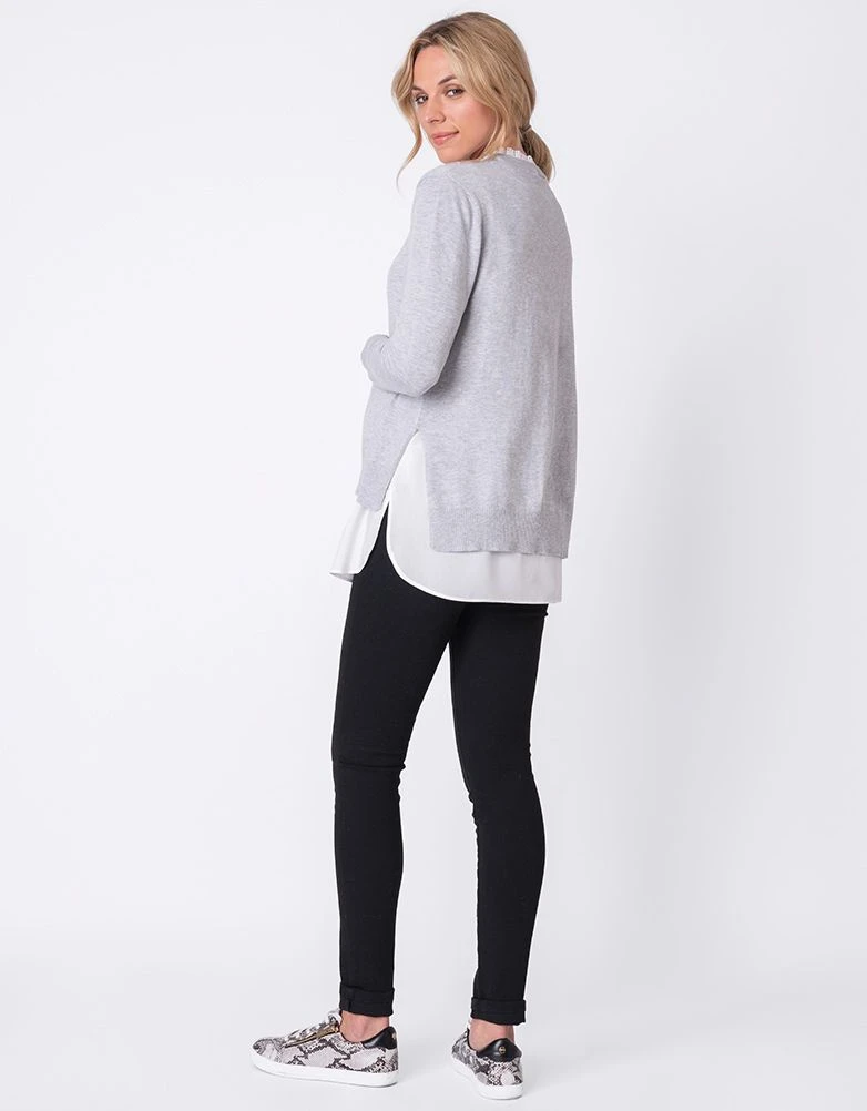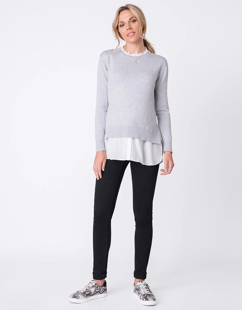 Un look superposé pour votre garde-robe du quotidien, ce pull de grossesse et d’allaitement est un indispensable. En maille douce, il épouse parfaitement vos courbes et est fendu sur les côtés pour s’adapter à vos nouvelles formes. Le pull peut être porté seul ou superposé sur la fausse chemise, tandis que le col en broderie anglaise détachable offre une finition habillée. Une fois bébé né, il suffit de relever le pull pour allaiter en toute discrétion.