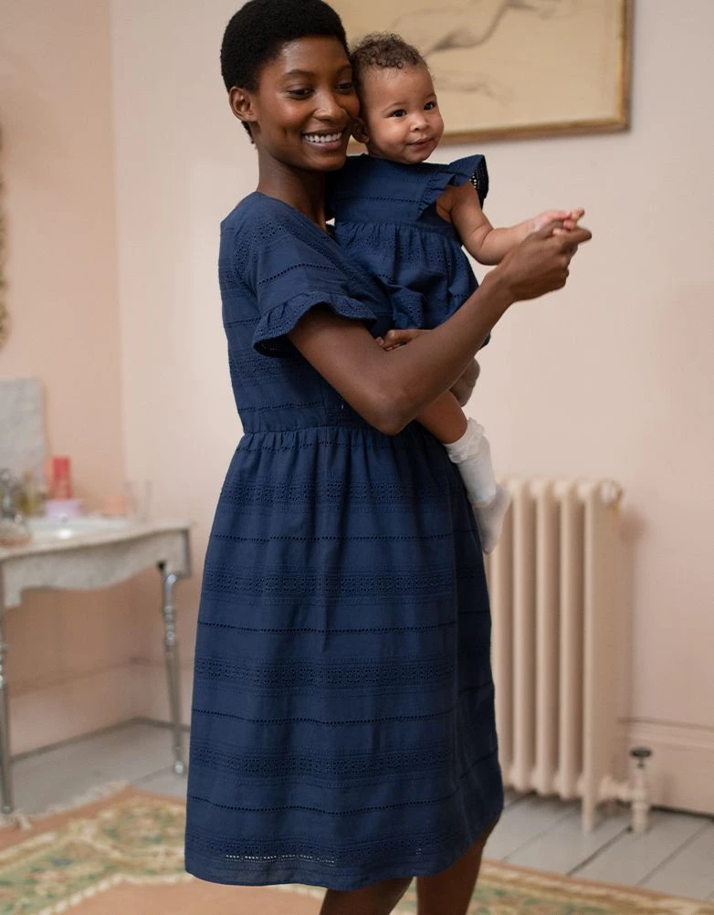 Seraphine Robe Broderie Anglaise Bleu Marine De Grossesse à Allaitement