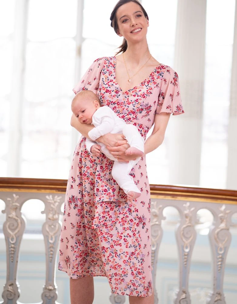 Seraphine Robe Cérémonie De La Grossesse à L’allaitement Imprimé Fleuri – Rose