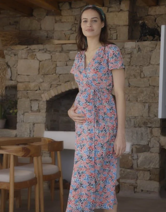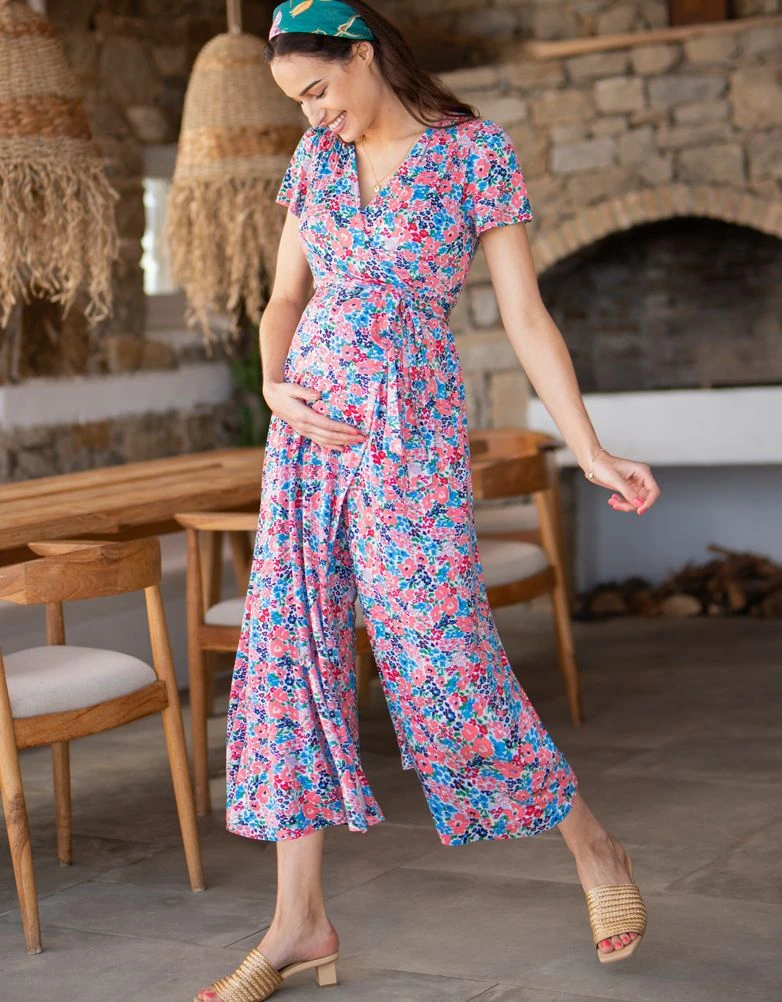 Notre toute nouvelle robe-combinaison grossesse et allaitement à motif floral est un hybride de style innovant. Nous pensons que vous allez l’ADORER. Fabriquée en jersey de viscose LENZING™ ECOVERO™, elle est ultra-douce, extensible et offre tout le confort d’une combinaison ordinaire. Mais voici la nouveauté : un panneau cache-cœur astucieux à l’avant se drape magnifiquement sur votre ventre et se fixe à la taille empire pour une finition ultra-flatteuse ! Après la naissance de votre bébé, le corsage cache-coeur s’écarte pour révéler une deuxième couche secrète avec un accès discret pour l’allaitement – parfaite pour allaiter le bébé ou pour tirer son lait en déplacement. Des manches courtes et un imprimé floral estival complètent le look. Mettez-vous sur votre trente-et-un en la portant lors des mariages, des fêtes et des occasions spéciales ou associez-la à des baskets et à une veste en jean pour un look confortable le week-end.
