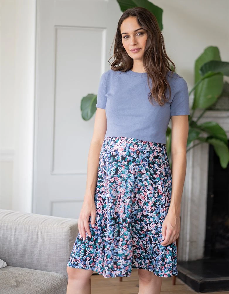 Seraphine Robe De Grossesse à Allaitement à Imprimé Floral Bleu Avec Haut