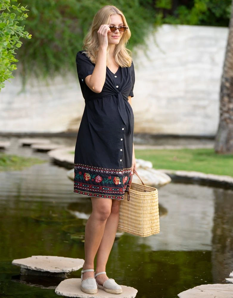 Inspirée de l’art folklorique traditionnel, cette robe d’été en coton est conçue pour un ajustement parfait tout au long de chaque semaine de grossesse, avec un accès discret à l’allaitement pour l’arrivée de bébé.