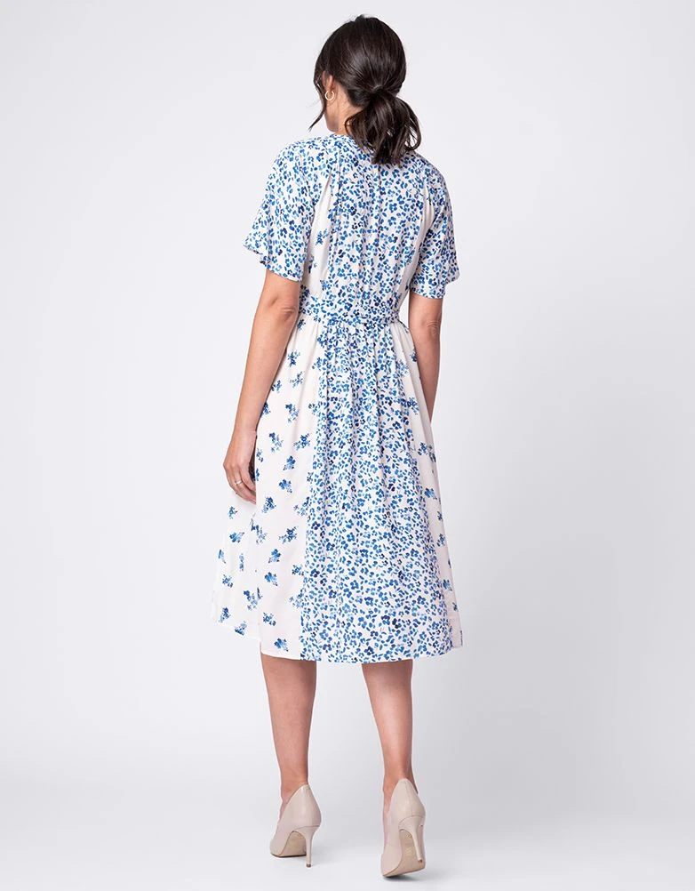 Seraphine Robe De Grossesse Et D’allaitement à Fleurs Bleue Et Blanche