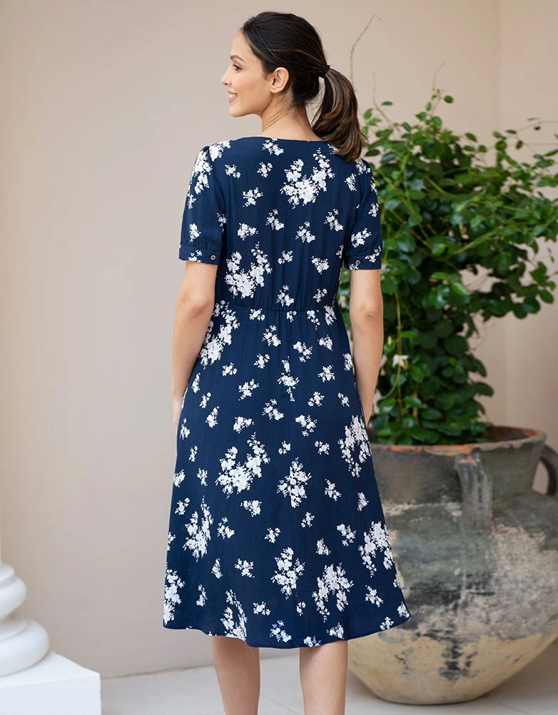 Seraphine Robe De Grossesse Et D’allaitement à Imprimé Fleuri Bleu Marine Et Blanc