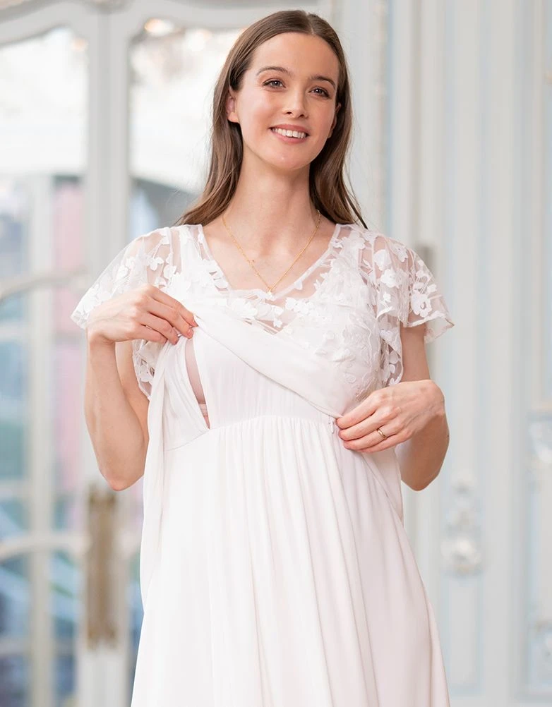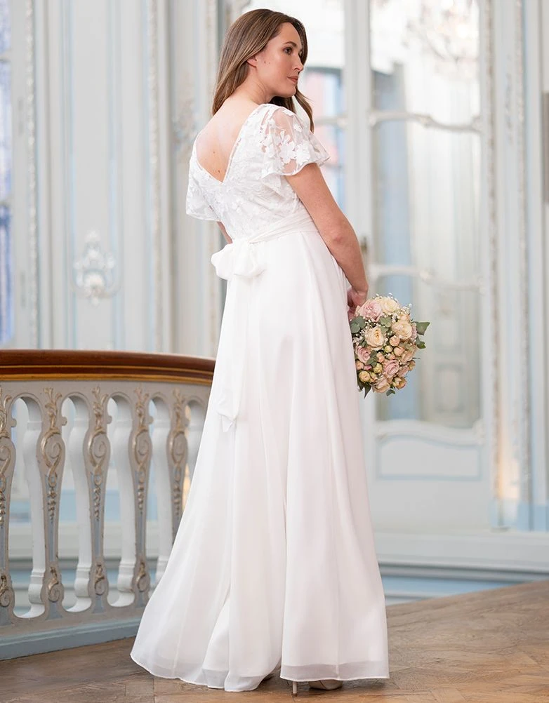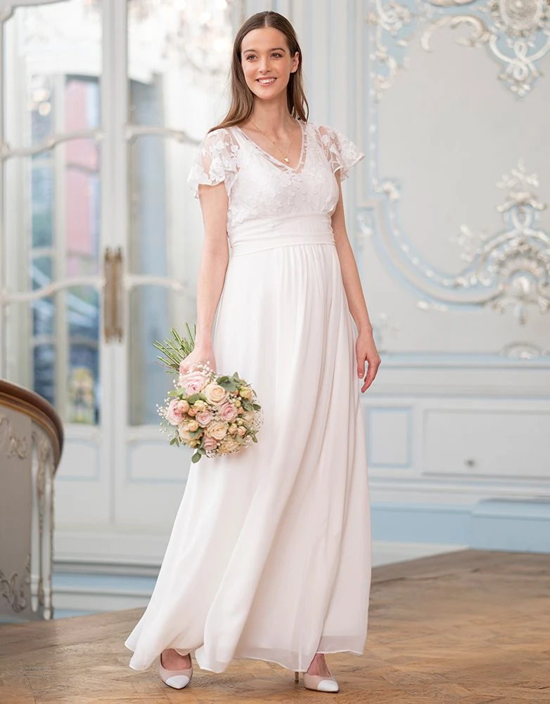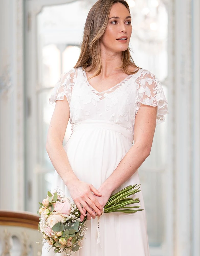 Seraphine Robe De Mariée De Grossesse Et D’allaitement En Mousseline De Soie Et Dentelle – Ivoire
