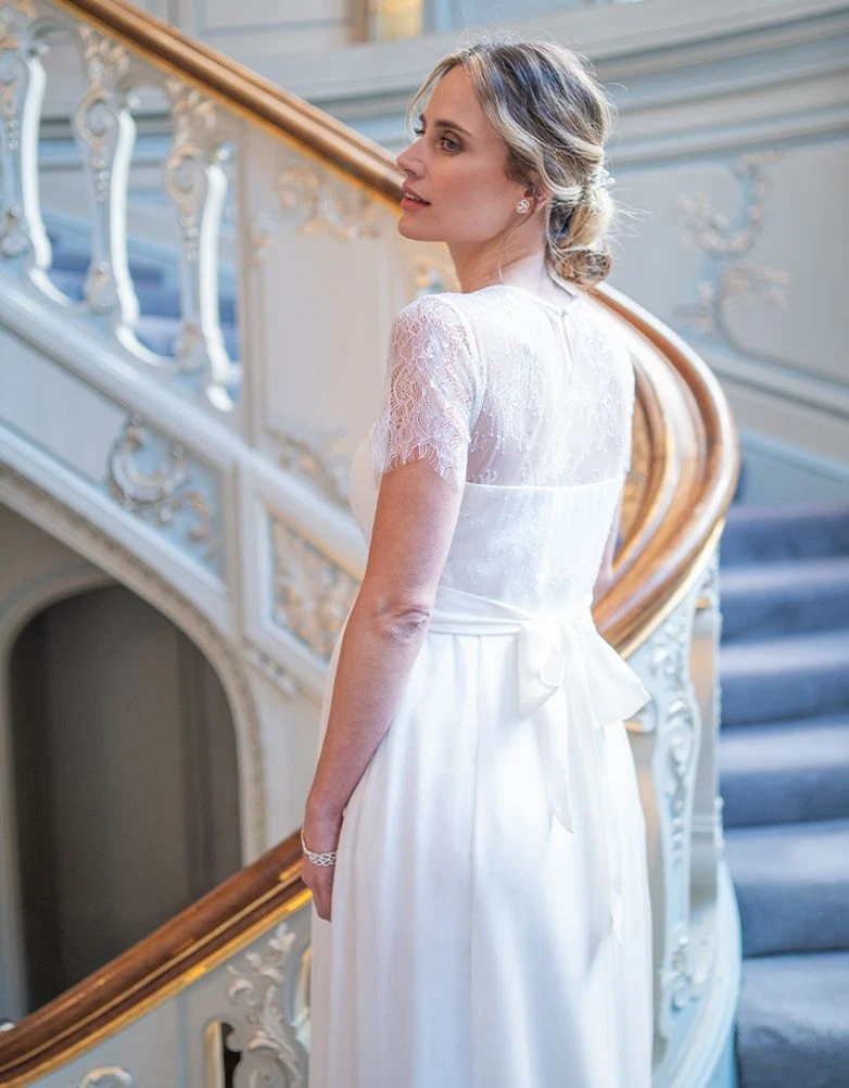 Seraphine Robe De Mariée De Grossesse Et D’allaitement En Mousseline De Soie Et Dentelle – Ivoire