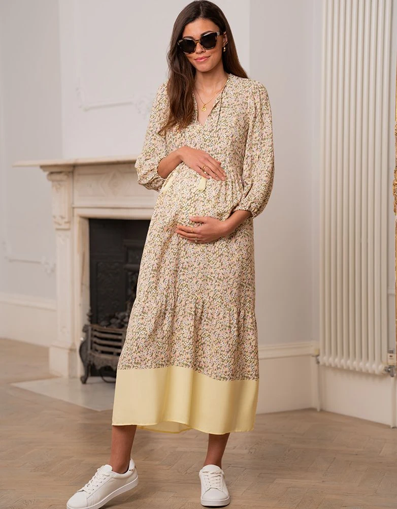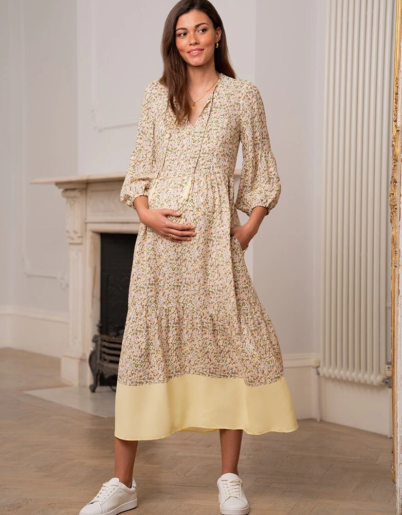 Seraphine Robe De Maternité à Allaitement Mi-longue à Imprimé Petites Fleurs Boho