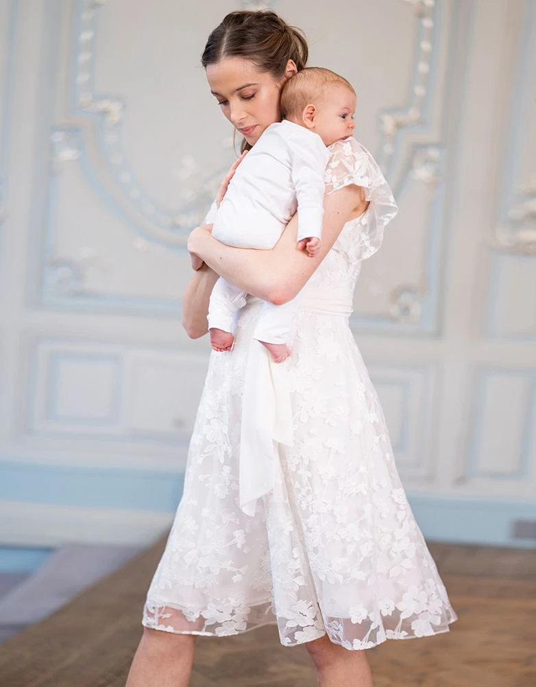 Seraphine Robe En Dentelle Florale De Grossesse à Allaitement Blanche à Fleurs
