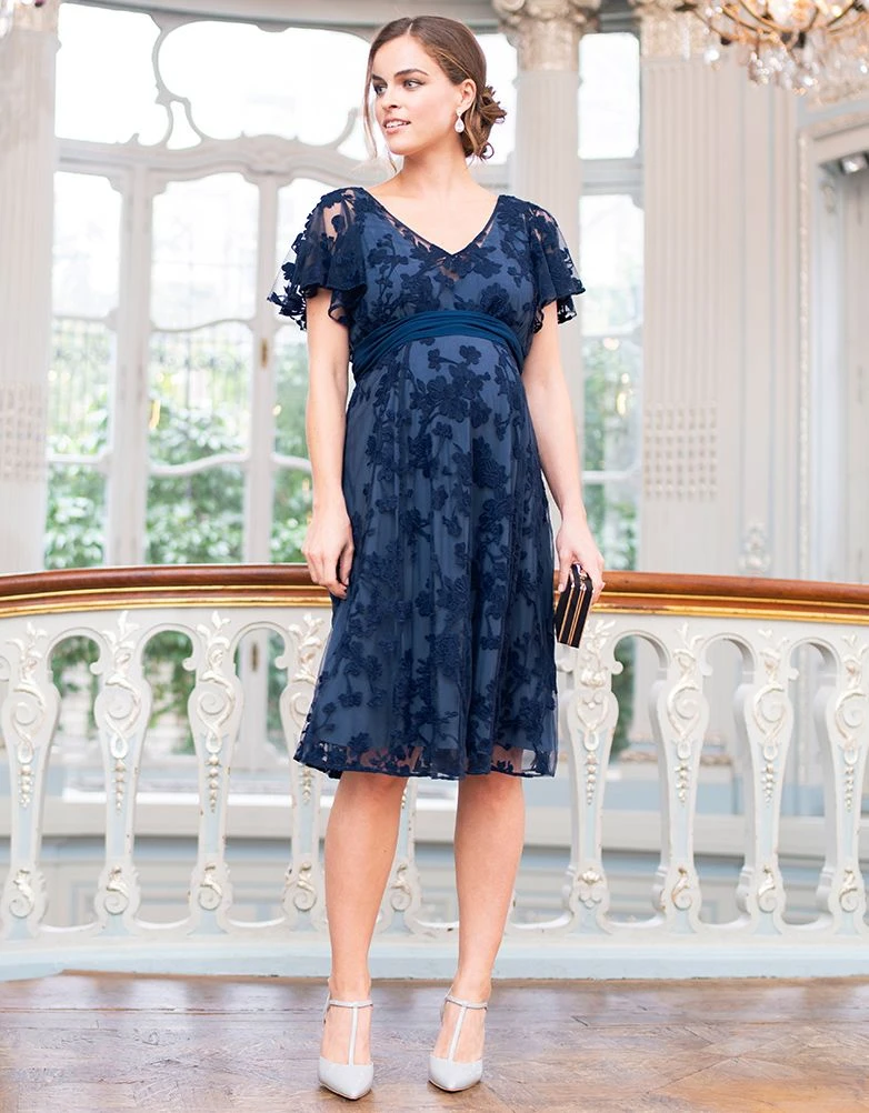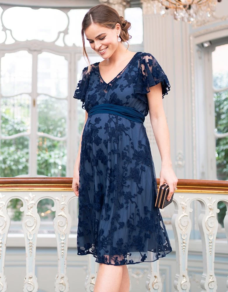 Seraphine Robe En Dentelle Florale De Grossesse à Allaitement Bleu Marine