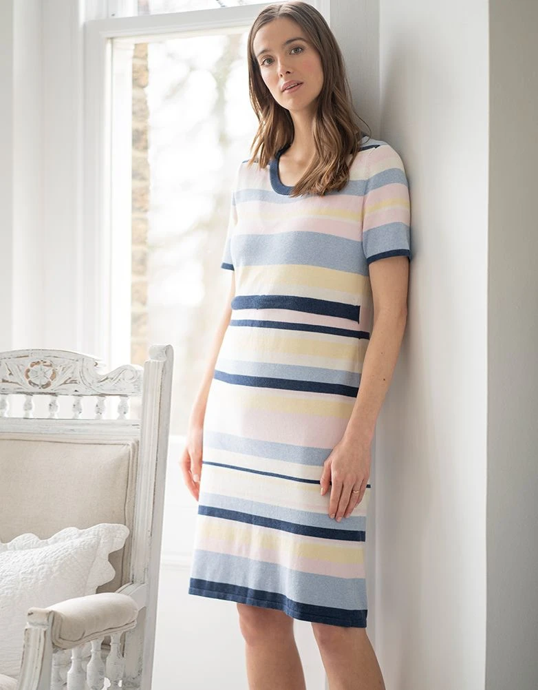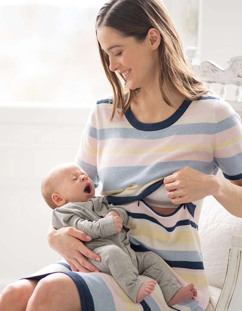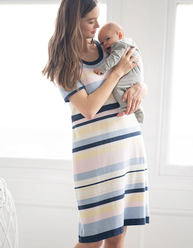 Seraphine Robe Grossesse à Allaitement En Tricot à Rayures Multiples