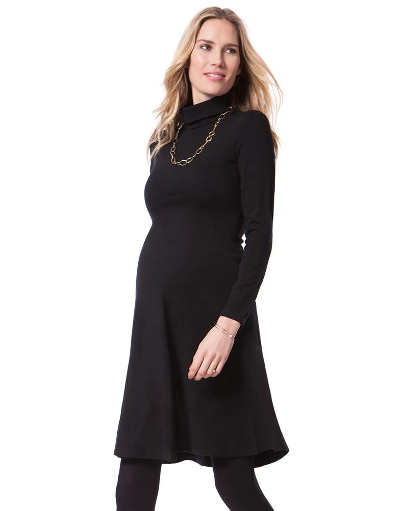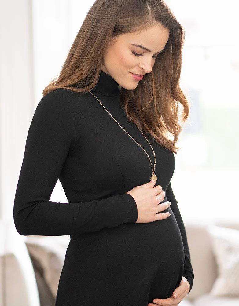 Élégante, chic, classique, cette robe de grossesse col roulé noire est un indispensable de mode. Son tissu Ponte di Roma luxueux et sa coupe gracieuse sauront mettre en valeur votre silhouette, à toutes les étapes de votre grossesse. Portée par Kate Middleton, elle évoque royauté et délicatesse, et vous embellit comme aucune autre.