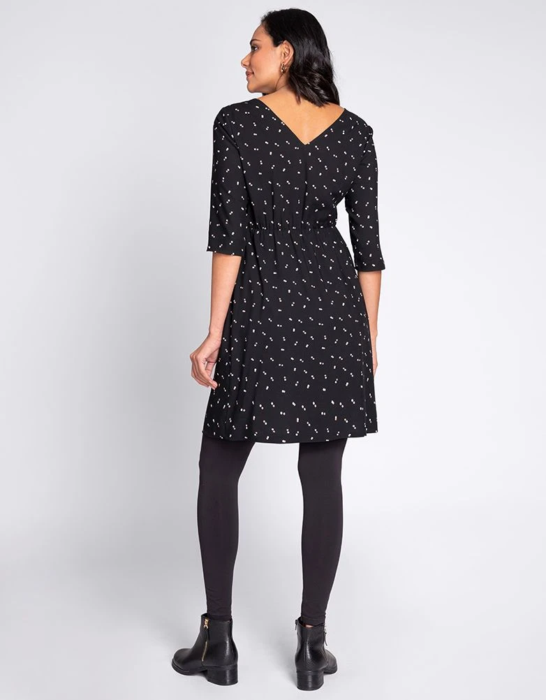 Notre robe de grossesse et d’allaitement à pois noirs vous accompagnera de vos neuf mois à la naissance de bébé. Sa coupe trapèze très féminine épouse parfaitement la forme de votre ventre et sa taille Empire attire l’attention sur votre point le plus mince. Une fois bébé né, des fermetures éclair astucieusement dissimulées s’ouvrent pour faciliter l’allaitement. Parfait pour s’habiller du bureau au soir, à tout moment de l’année, c’est la petite robe noire qu’il VOUS faut !