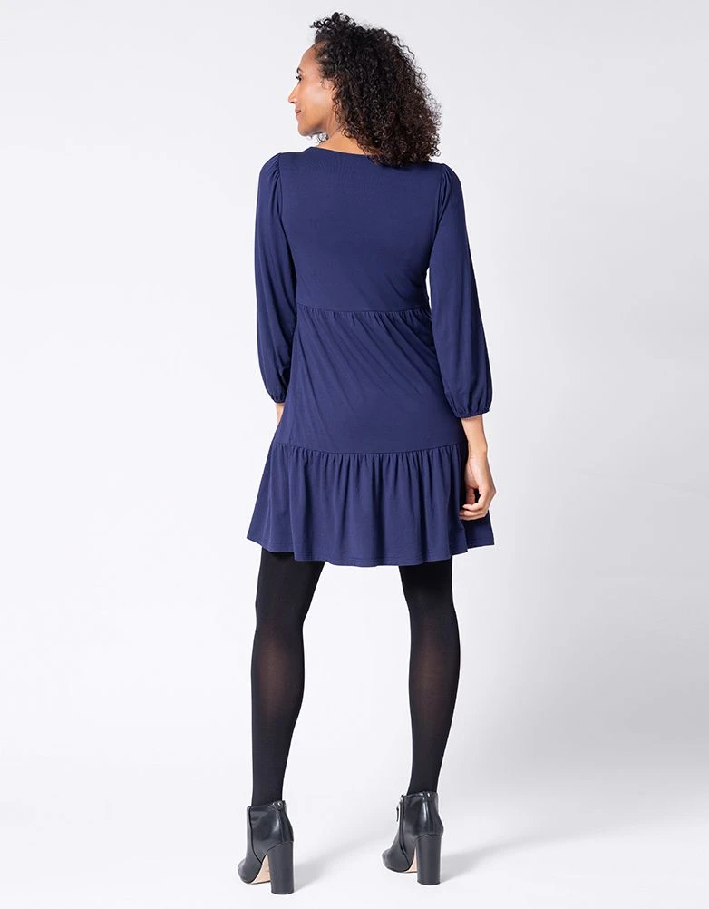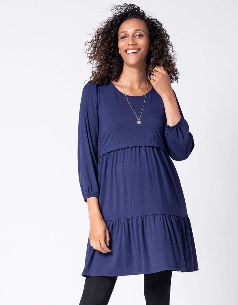Mignonne et confortable, avec un accès facile pour allaiter, notre robe de grossesse et d’allaitement à volants bleu marine ne vous laissera jamais tomber. Conçue en jersey doux extensible, avec une coupe facile et une jupe féminine à volants, elle offre un drapé impeccable et s’adapte à toutes les étapes du développement du bébé. Une fois le bébé arrivé, le devant se soulève pour faciliter l’allaitement et vous pouvez continuer à la porter bien après vos neuf mois. Portez-la sans collants et des baskets en septembre, puis enfilez-la avec des collants et des bottes lorsque le temps se rafraîchit.