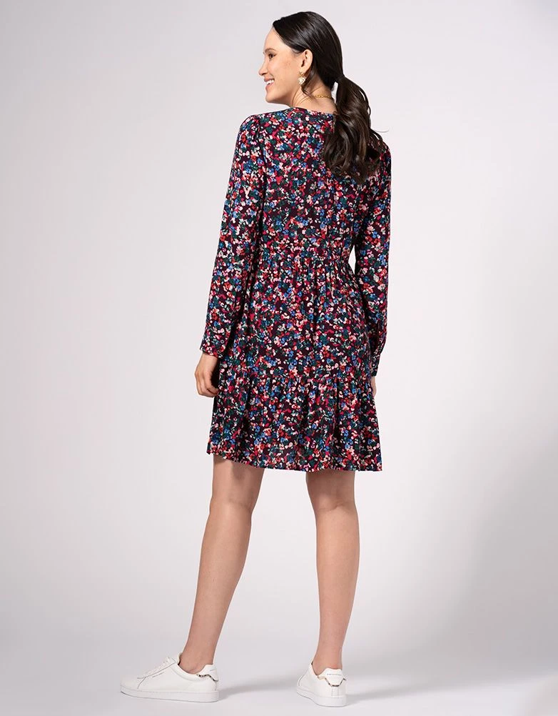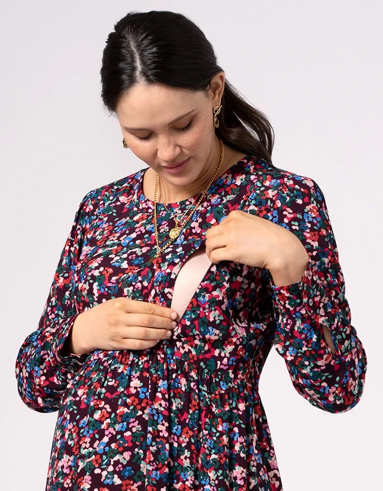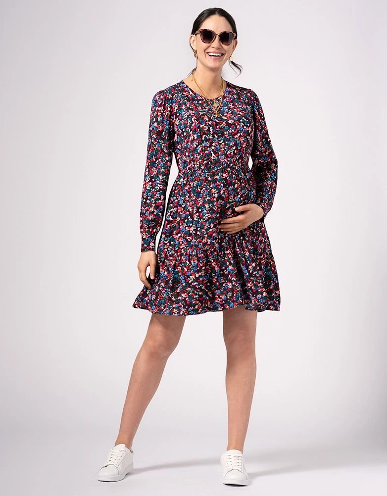 Légère et éclatante avec un joli imprimé floral, notre robe de grossesse et d’allaitement à volants est un style à part entière conçu pour durer bien au-delà de neuf mois ! Réalisée dans une crêpe de viscose douce et respirante, cette robe à la coupe ample se porte facilement ! Après l’arrivée de bébé, de discrètes fermetures éclairs dissimulées s’ouvrent sur le devant pour faciliter l’allaitement. Une encolure haute élégante et des manches longues avec de jolis poignets boutonnés complètent le look – à porter en toutes occasions.